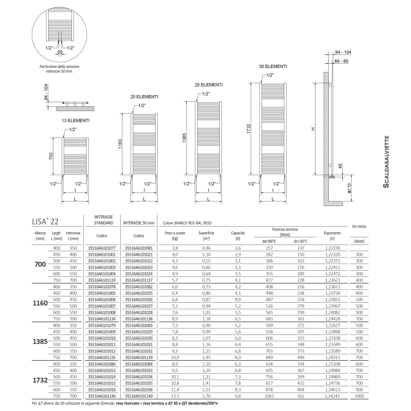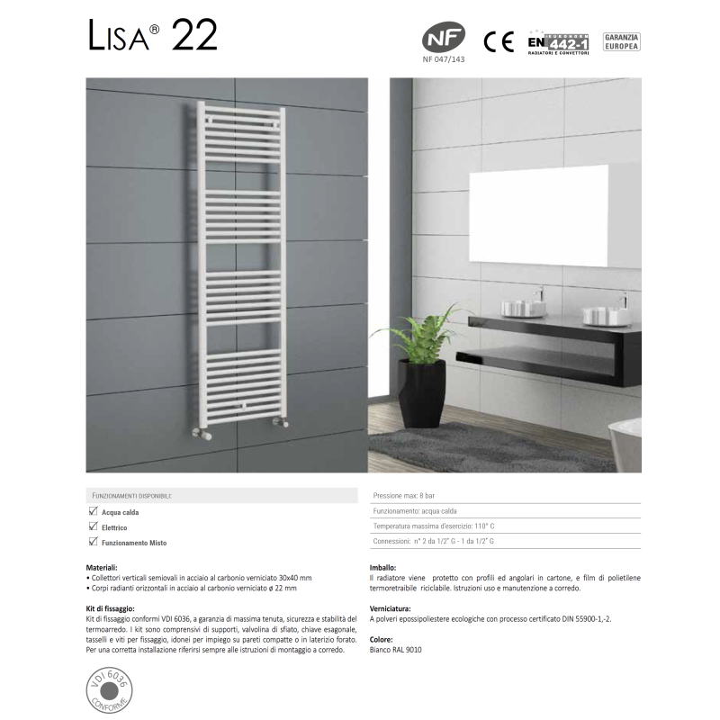 Radiatore Cordivari Lisa 22 550 X 1400 mm Bianco Sistema HVAC