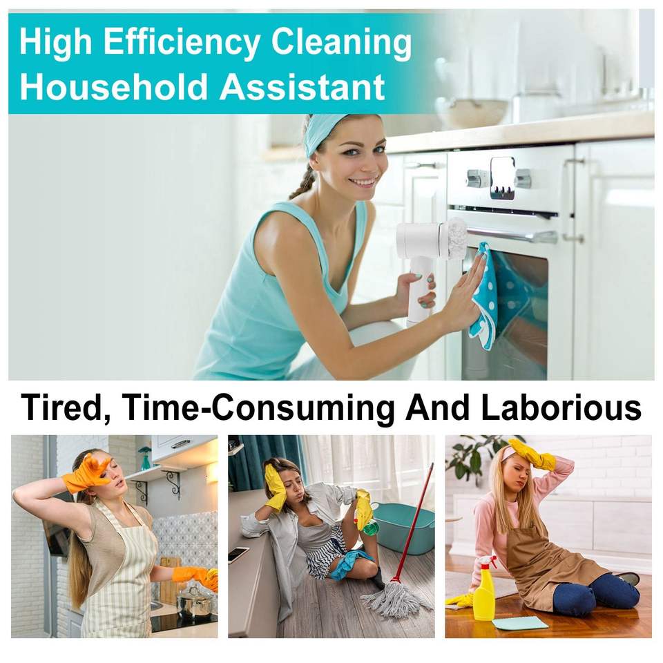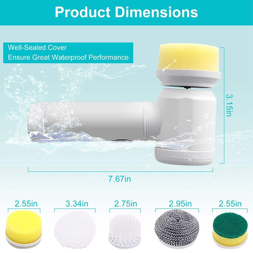 Spazzola Elettrica Senza Fili a 5 Testine per Pulizia, Ricaricabile, con Testine Sostituibili per Cucina e Doccia