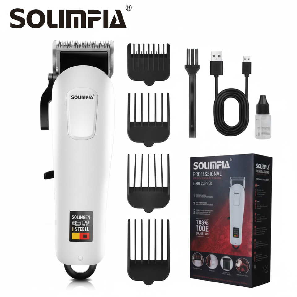 Tagliacapelli elettrico senza fili HT-6052 di SOUNFIA con display a LED, lama in acciaio inossidabile, 4 pettini guida, ricarica USB, IPX7 Wat