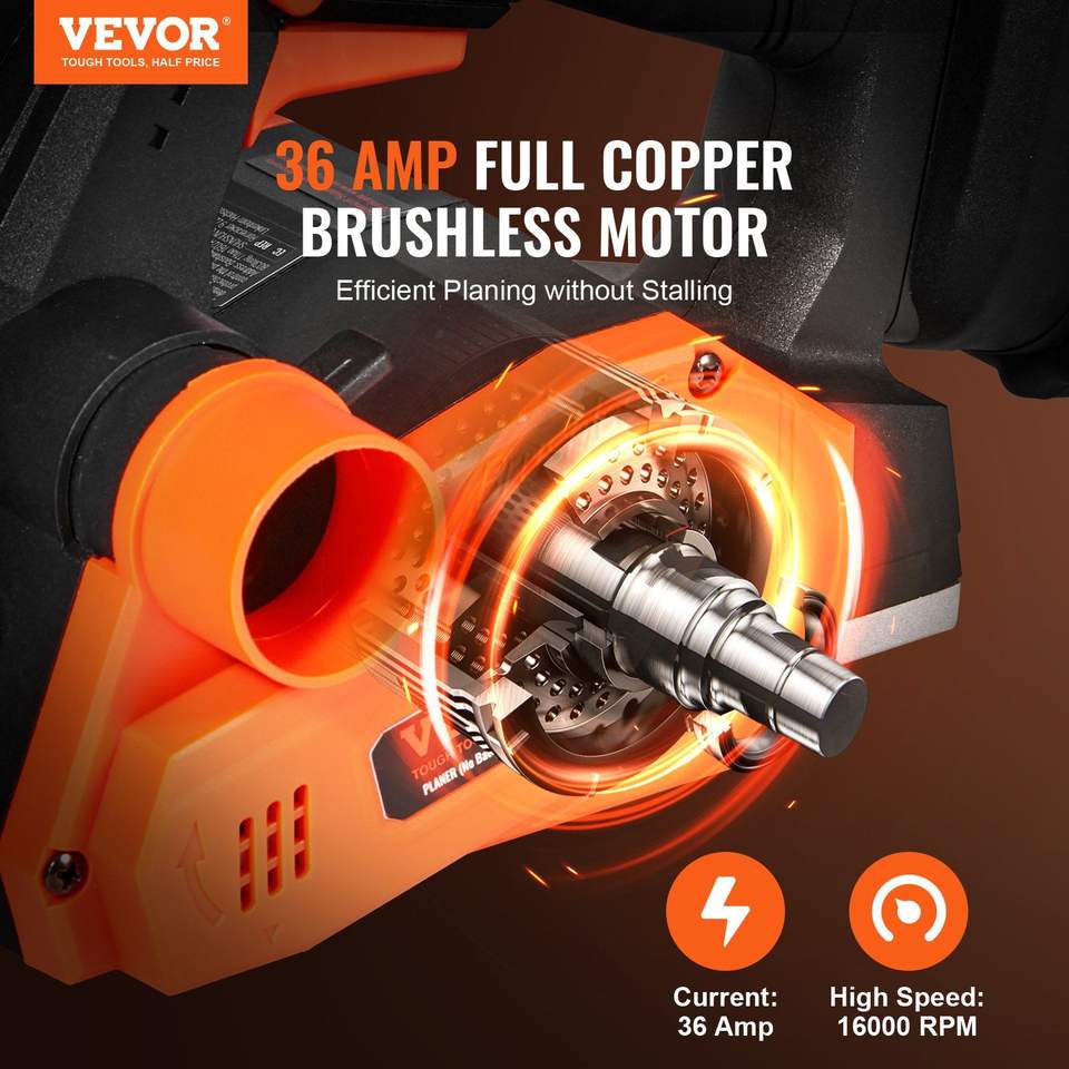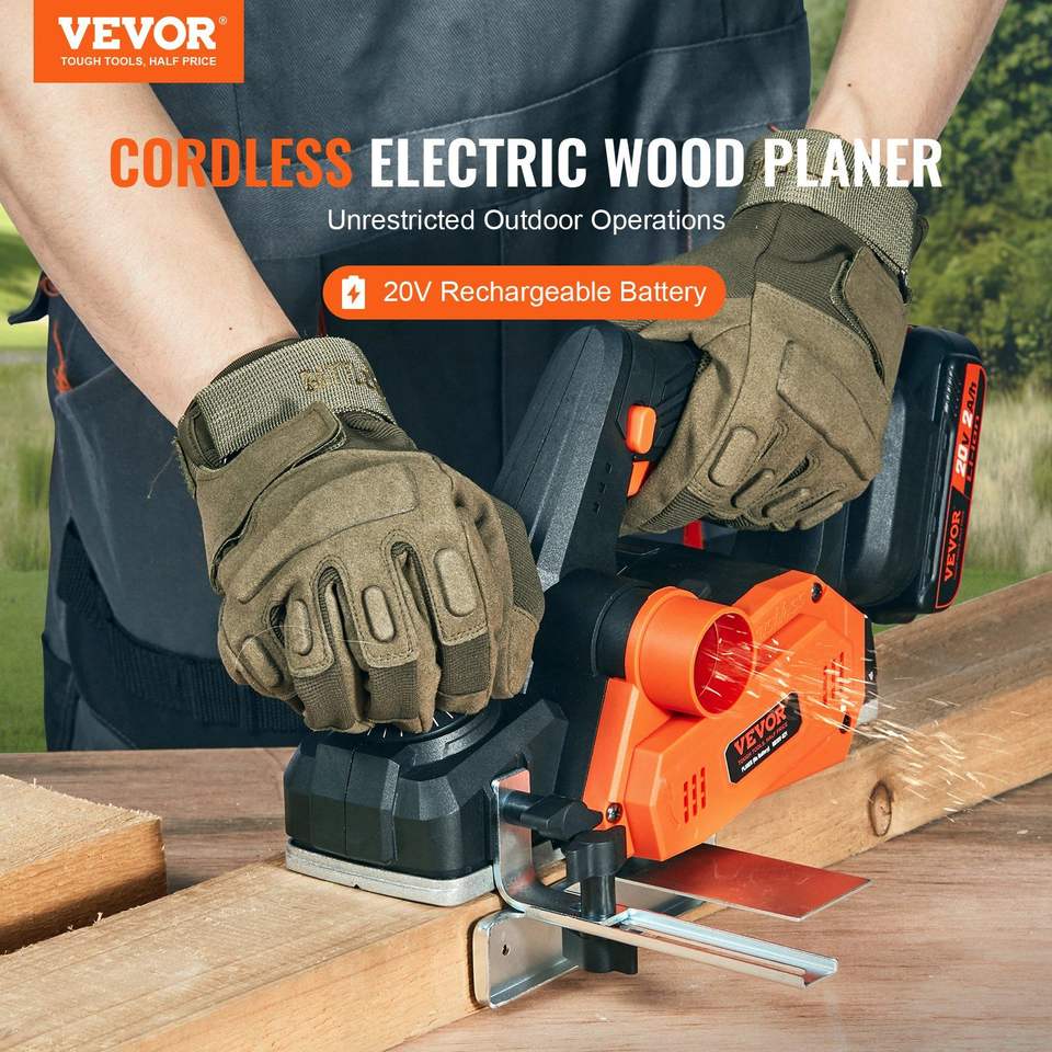 Pialla Elettrica Portatile Senza Fili, Larghezza 3-1/4'', 16000 RPM, Profondità Regolabile 5/64'', Lame HSS, Pialla per Legno a Doppia Impugnatura con Batteria
