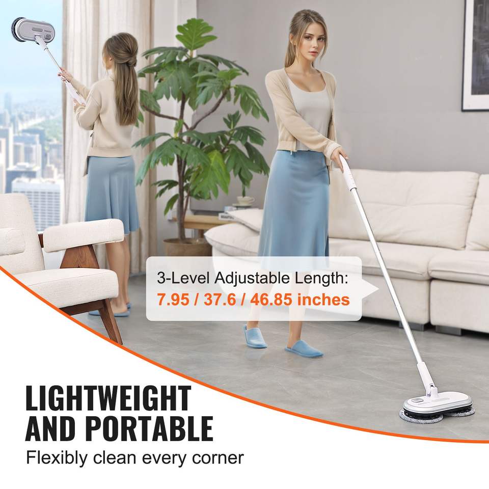 Mop Elettrico Senza Fili con Batteria Potente da 70 Minuti, Doppie Teste Rotanti, 4 Panni in Microfibra e 2 Spazzole Rotanti per Pavimenti