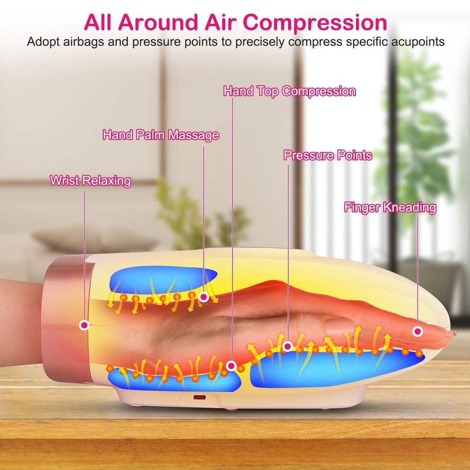 Massaggiatore Elettrico per Mani Senza Fili Ricaricabile con 6 Livelli di Pressione, Vibrazione e Terapia Termica, 6 Livelli di Compressione
