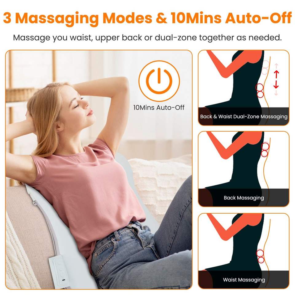 Massaggiatore Shiatsu per Schiena Ricaricabile USB Senza Fili, Massaggio Profondo 3D, 3 Modalità di Massaggio, 2 Livelli di Riscaldamento, Kit Terapeutico