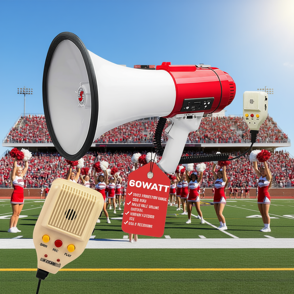 Megafono PA da 60W con sirena e amplificatore vocale per eventi di cheerleading e uso esterno
