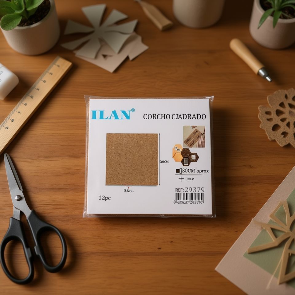 Foglio di sughero 30x30 cm quadrato colore naturale 12 pezzi per artigianato e decorazione