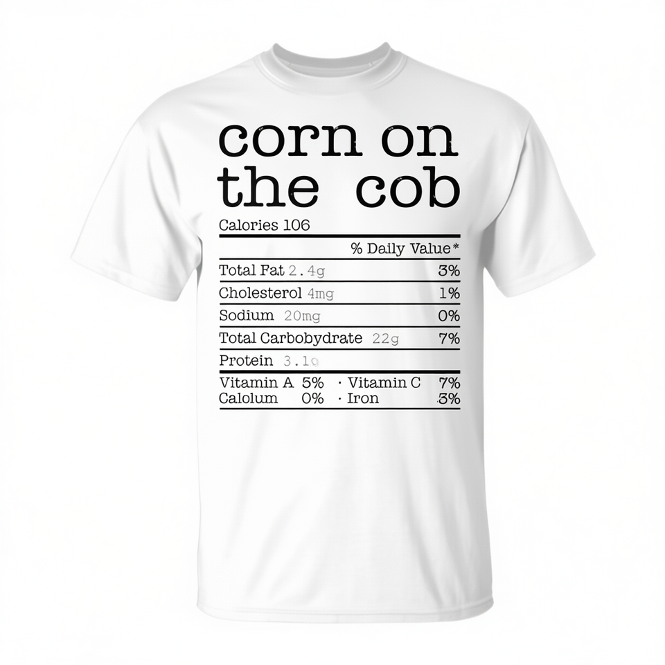 T-shirt promozionale con i dati nutrizionali del mais sul cocomero per il Ringraziamento e Natale