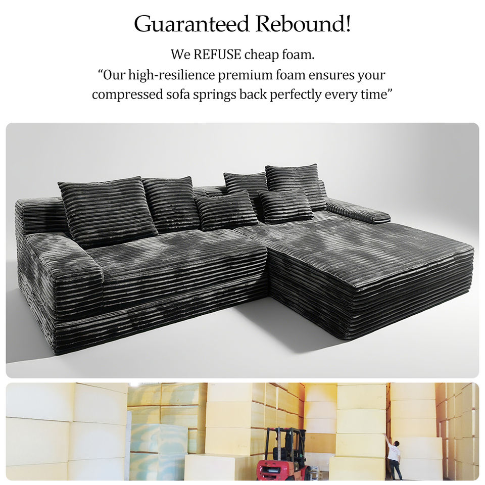 Set Divano Angolare Compresso in Scatola Imbottito in Pura Spugna Sottovuoto e Arrotolato Modulo di Arredo in Tessuto per Soggiorno