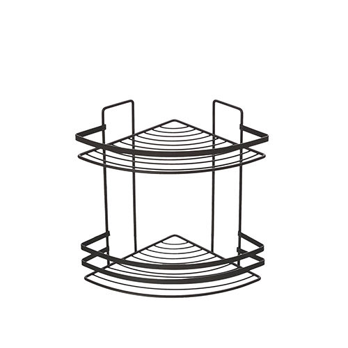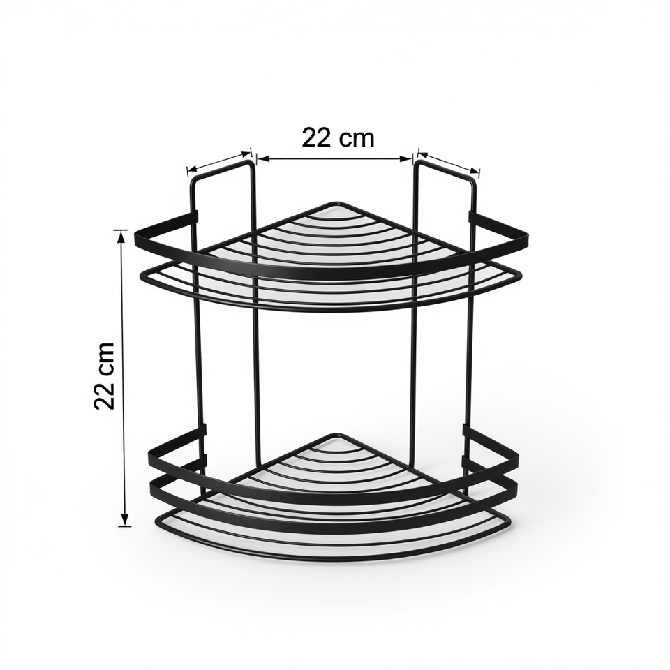 Mensola Angolare a 2 Ripiani Nera 22 cm x 22 cm x 30 cm, Scaffale per Bagno