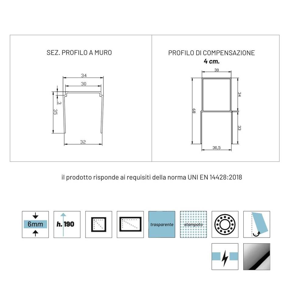 Fiordaliso blu S158 6 mm IX porta doccia scorrevole angolo 70x120x190h cm misura regolabile 70x120x190h cm regolabile