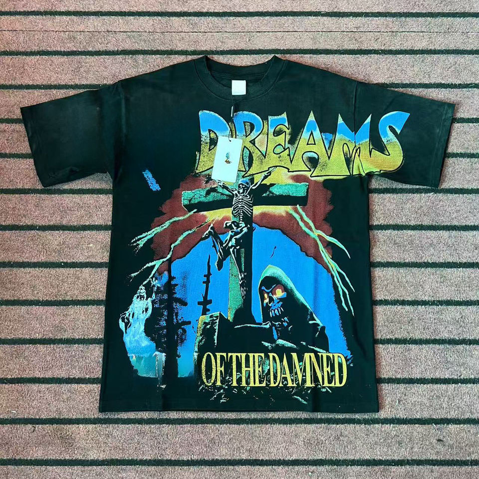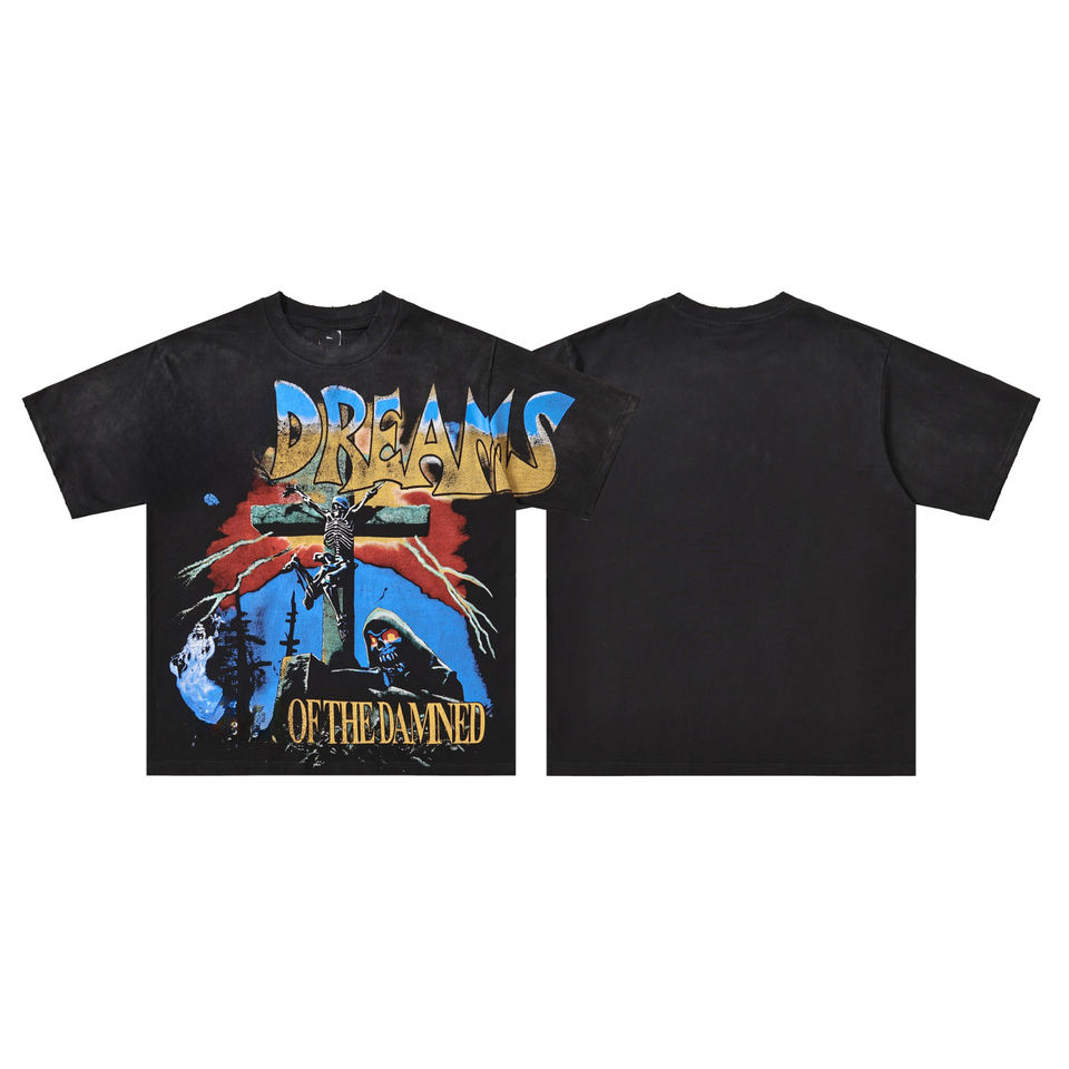 T-shirt da uomo stile VA, edizione corretta, in cotone lavato con graffiti vintage, a maniche corte, abbigliamento casual unisex estivo 2026