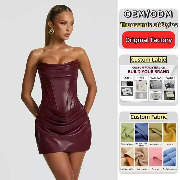 Corset Bodice Y2K Faux Leather Strapless Ruched Bodycon Party Evening Short Mini Dress for Women Ladies