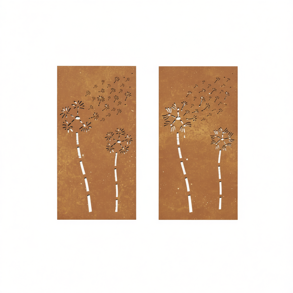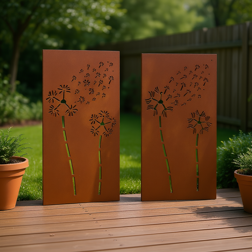 Decorazione Murale in Acciaio Corten con Design Floreale 41.3x21.7 Pollici, Ornamento da Giardino e Patio, Finitura Naturale Rettangolare per Esterni
