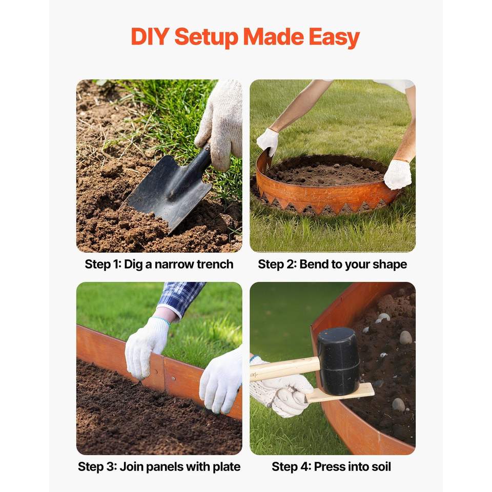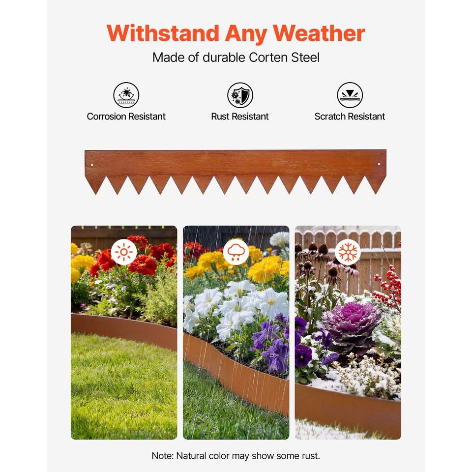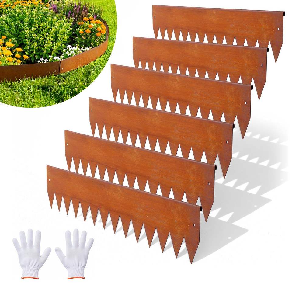 Bordatura per Giardino in Acciaio Corten, Confezione da 6, 40 x 6 Pollici, Metallo Pieghevole con 8 Piastre di Connessione, Piastra Decorativa per Paesaggistica