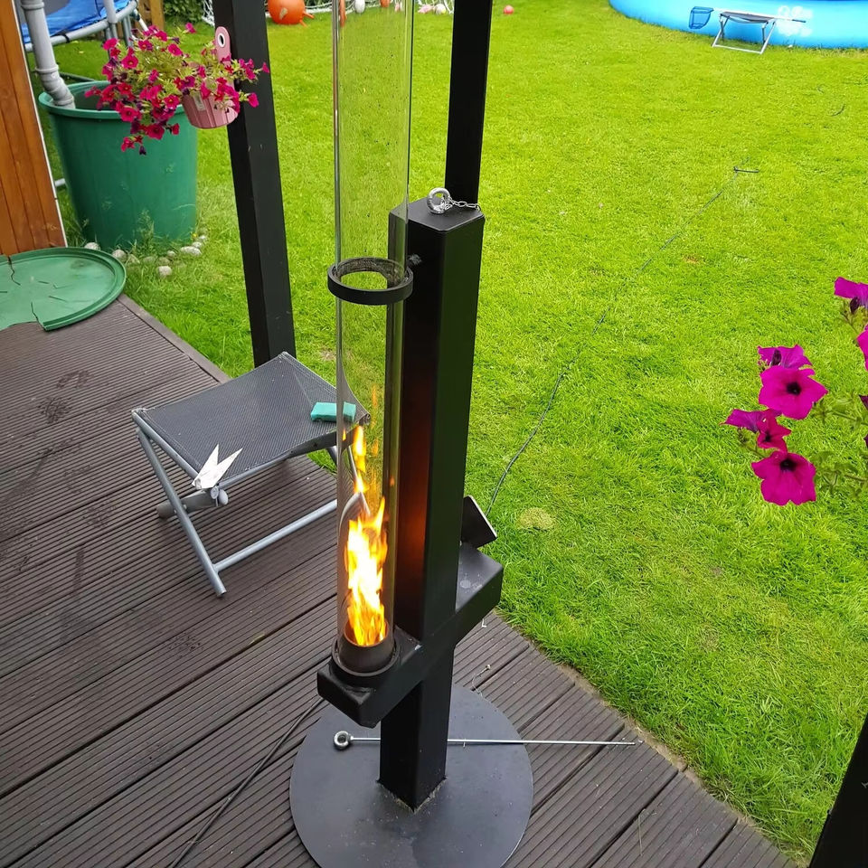 Colonna di fuoco a pellet in acciaio Corten, braciere, fornello a razzo