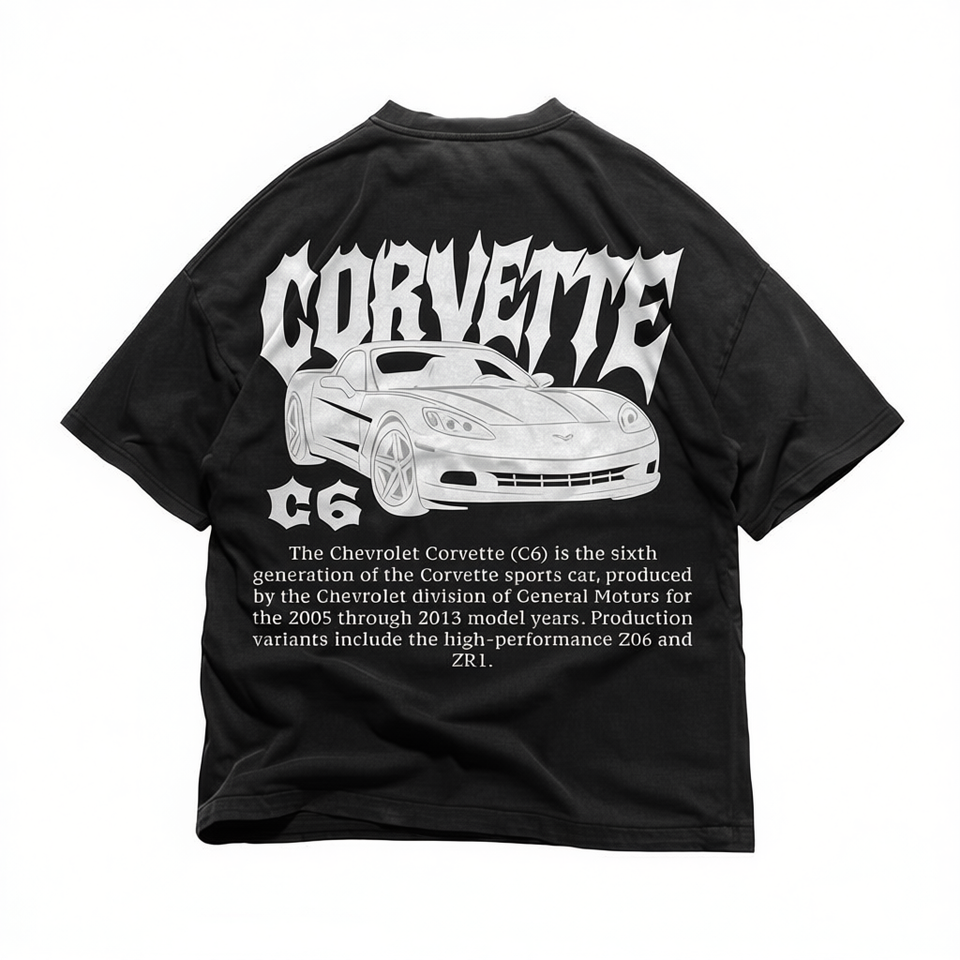 Corvette C6 Graphic Tee Black Oversized Streetwear Top for Men Women