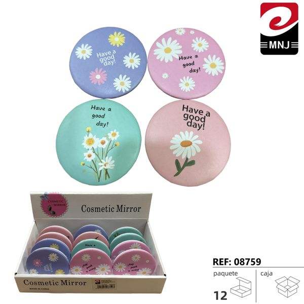 Specchio Cosmetico con Design Floreale, Specchietto Compatto con Motivo Margherita e Messaggio 'Have A Good Day', Specchio Portatile per Donne