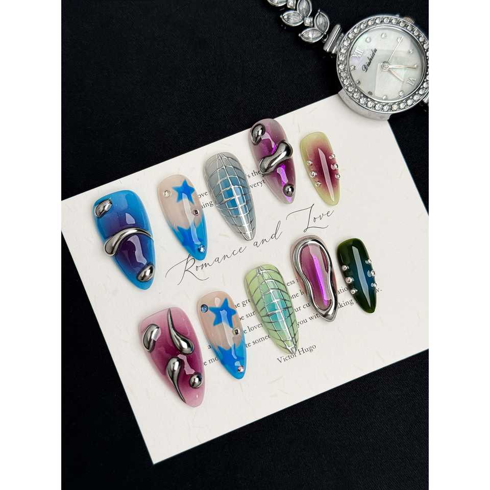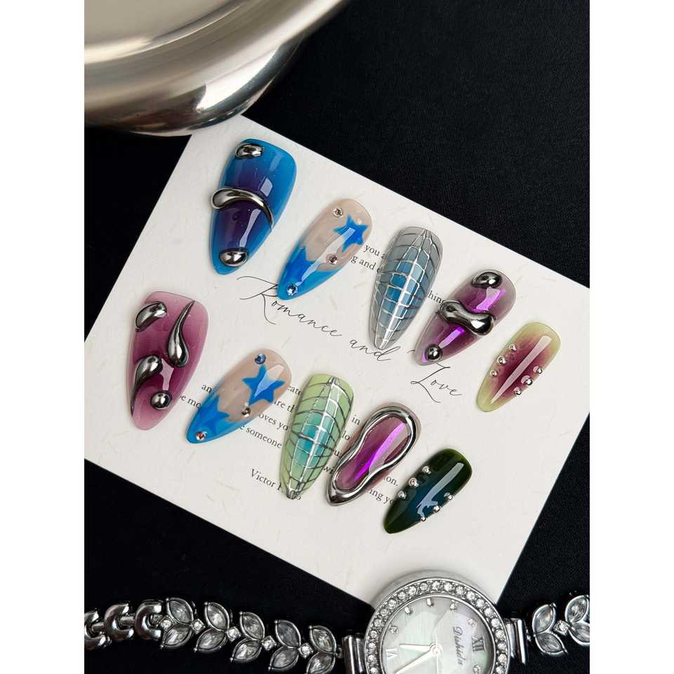 Cosmic Pop Press-On Nail Art Divertenti decorazioni per unghie a tema cosmico per uno stile unico