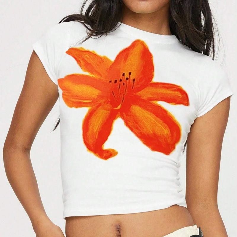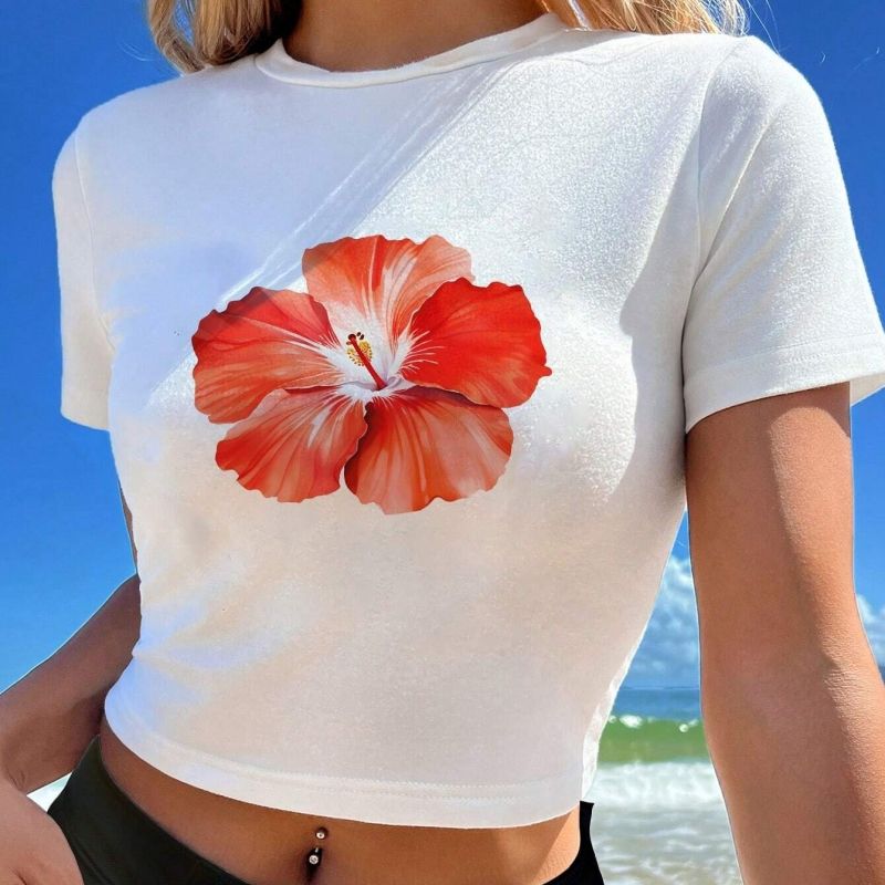T-shirt attillata da donna in cotone traspirante con Top Crop personalizzato t-shirt da donna
