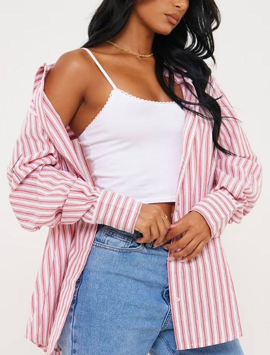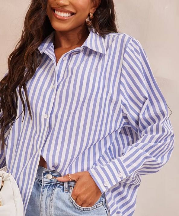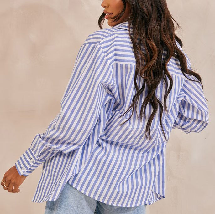 Camicette in cotone Casual a maniche lunghe blu e bianche con bottone a tracolla top oversize camicia a righe da donna