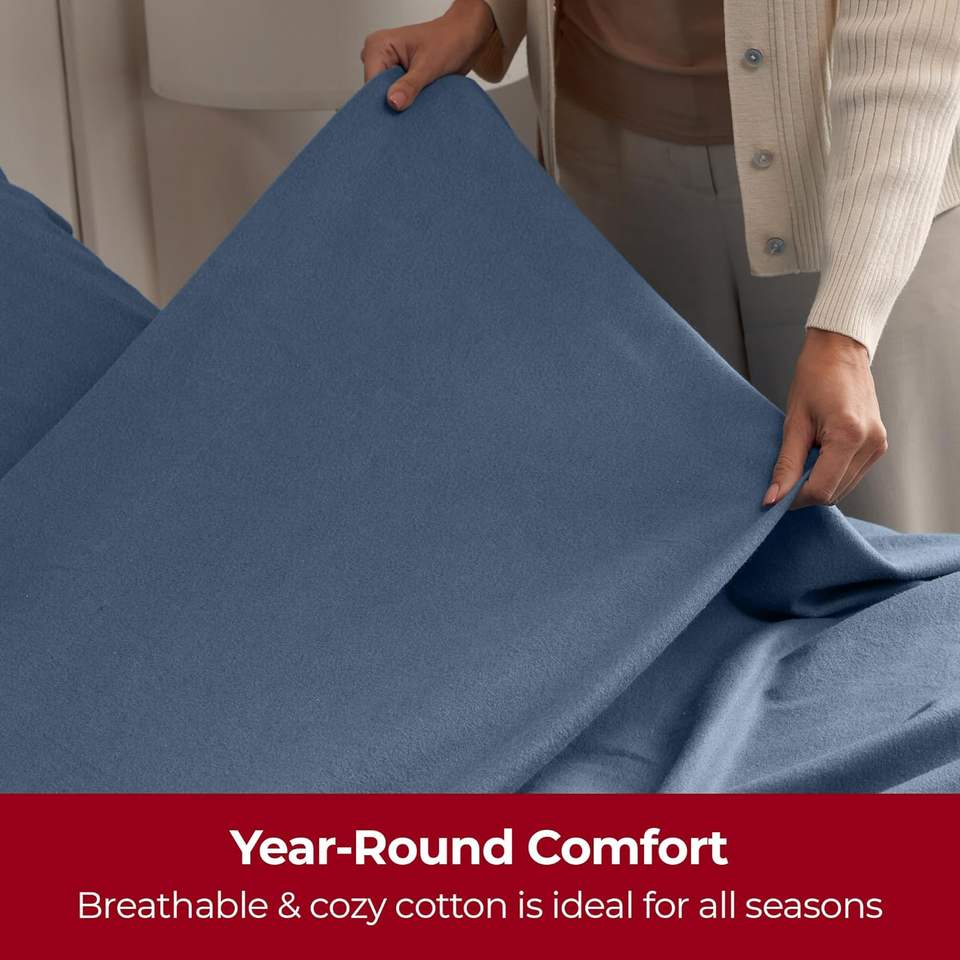Lenzuola in flanella di cotone Queen Set doppio spazzolato per una maggiore morbidezza e Comfort di lusso leggero con tasca profonda