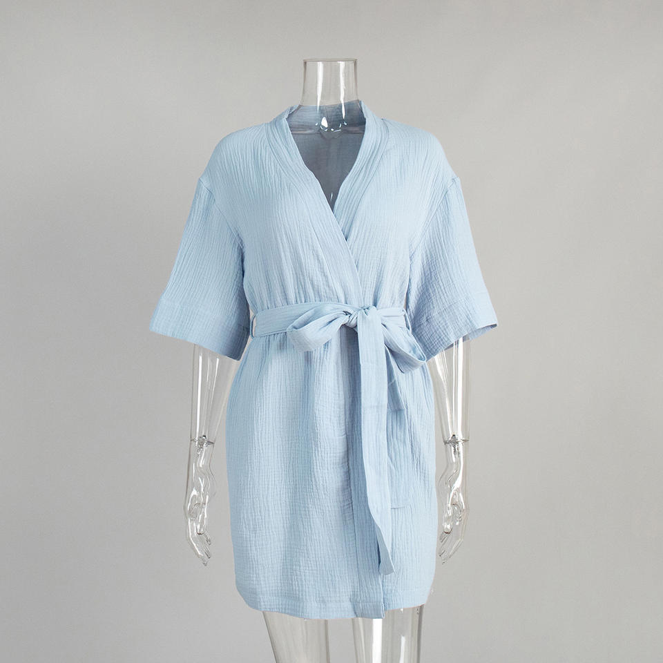 Camicia da Notte Estiva in Cotone con Scollo a V, Traspirante, Lunghezza al Ginocchio, Tinta Unita, Maniche Corte, Vestaglia Casual Comoda