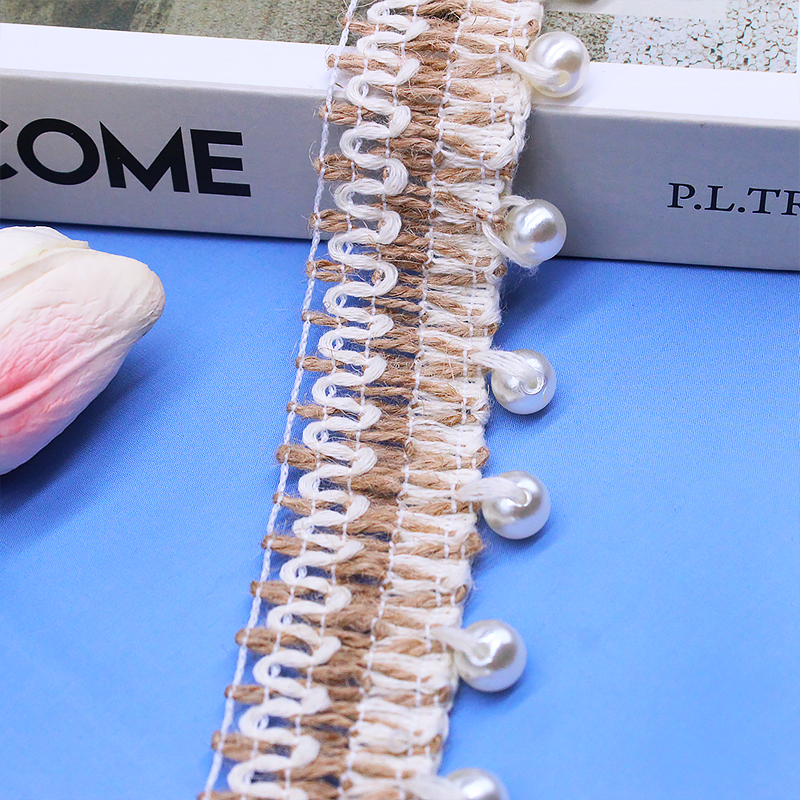 Cotton Linen Decorative Accessories Pearl Accents Lace Edging for Household Crafts for Hanging Decorations Bag Use Sexy Style