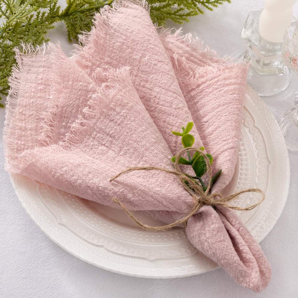 Cotton Linen Napkins Dusty Rose Easter Spring Cloth Napkins Washable Cotton Dinner Napkins Fringe