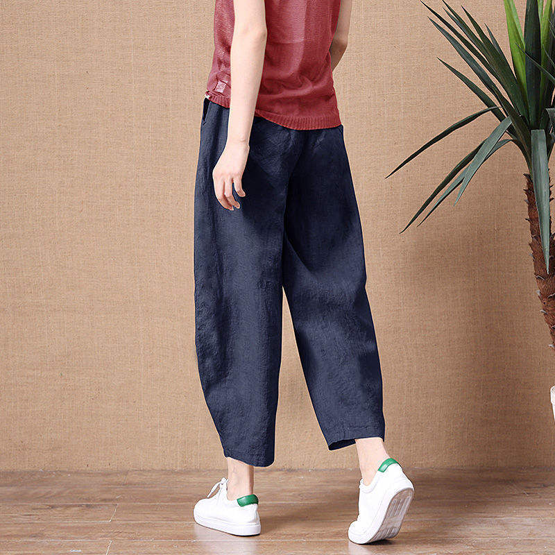 Pantaloni Larghi in Cotone e Lino da Donna, Nuovi Pantaloni Estivi Comodi a Gamba Larga, Taglie Grandi, Stile Harem, Versatili, in Lino, a Nove Punti, Casual