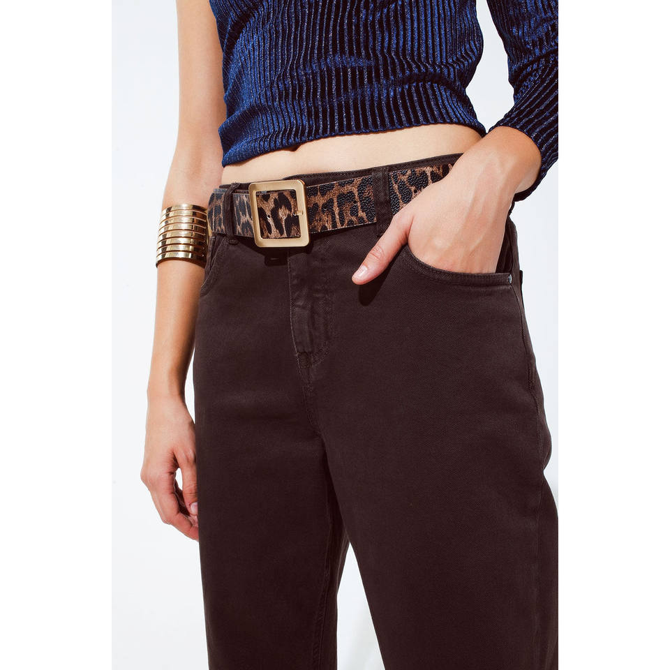 Jeans a Vita Media in Cotone, Modello Slouchy, Colore Marrone Cioccolato
