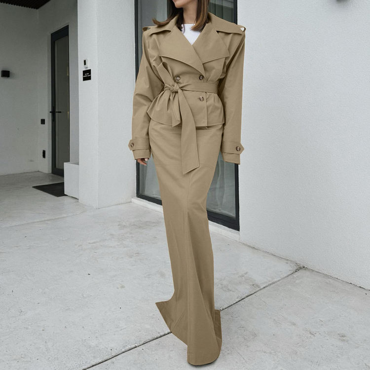 Cotton Polyester Blended Trending Fashion Suits Ladies Short Trench Coat Skirt Sets 2 Piece Outfits Spring 2026 Women's Clothes