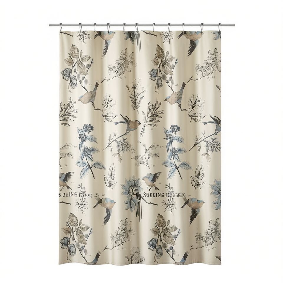 Tenda da Doccia in Cotone Stampato con Design Floreale e Uccelli Vintage, Decorazione Classica per il Bagno