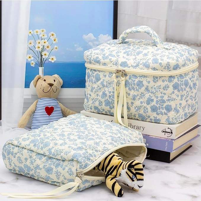 Borsa da Viaggio per Cosmetici in Cotone Trapuntato con Chiusura a Cerniera, Grande Capacità, per Donne, Organizer per Trucchi, Blu, Marca LOHAS