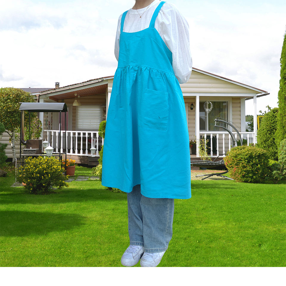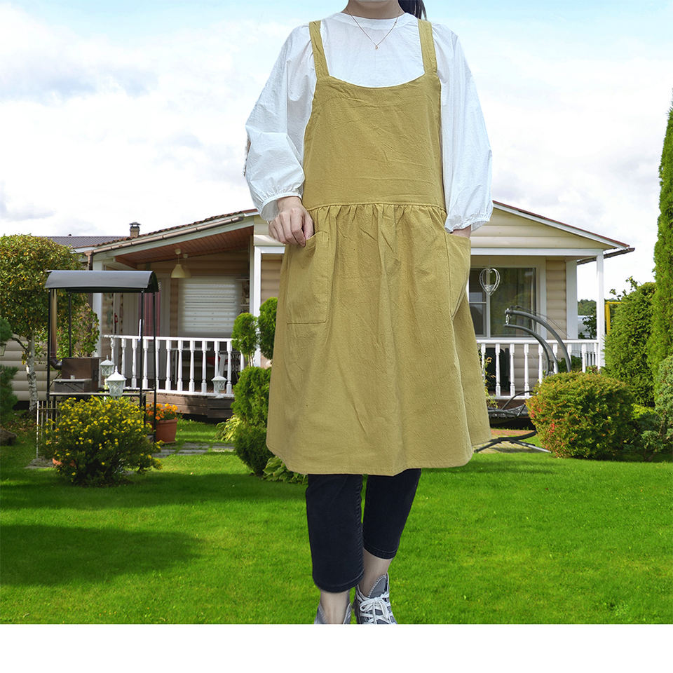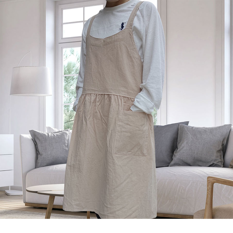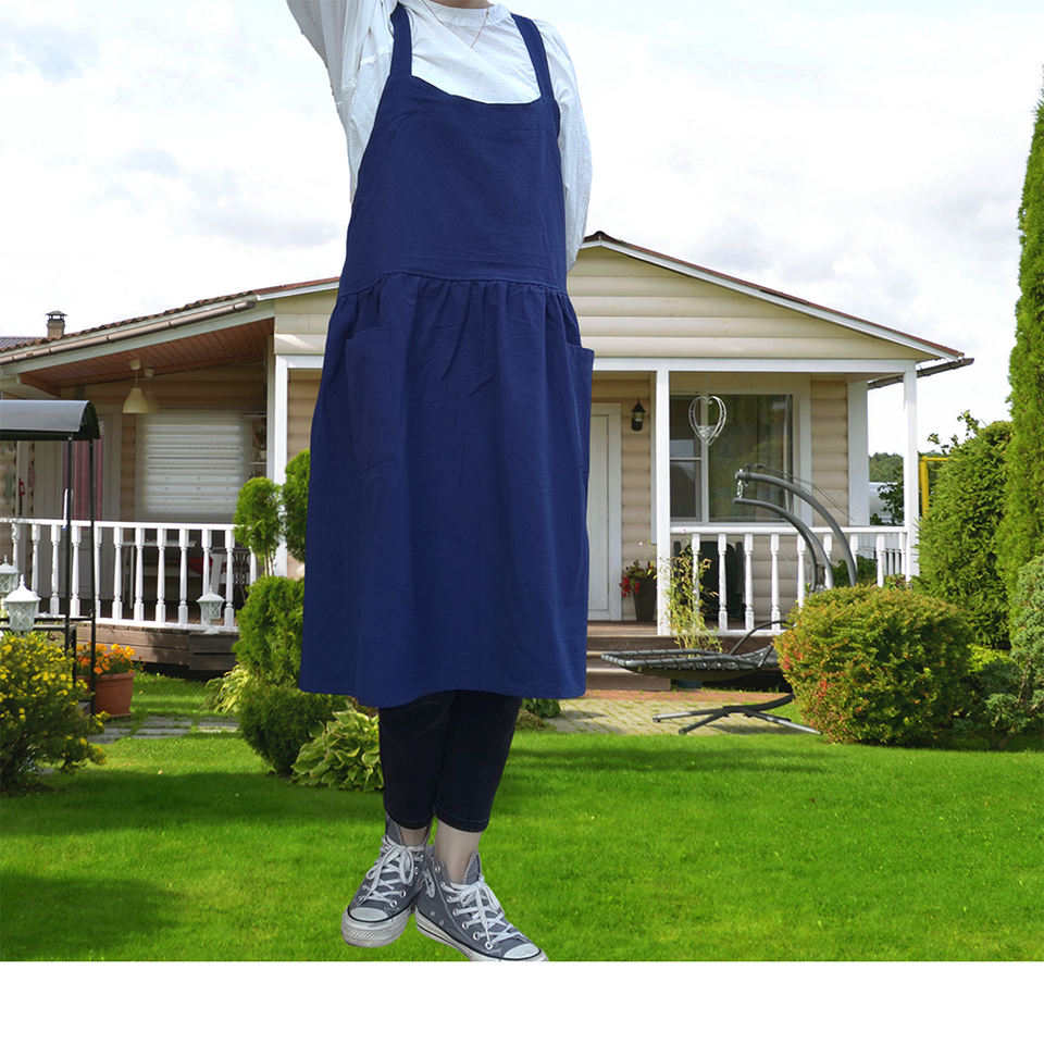 Grembiule oversize in cotone e lino, incrociato senza cravatte, abiti da lavoro della maestra d'asilo, copertina in pittura, donna su misura