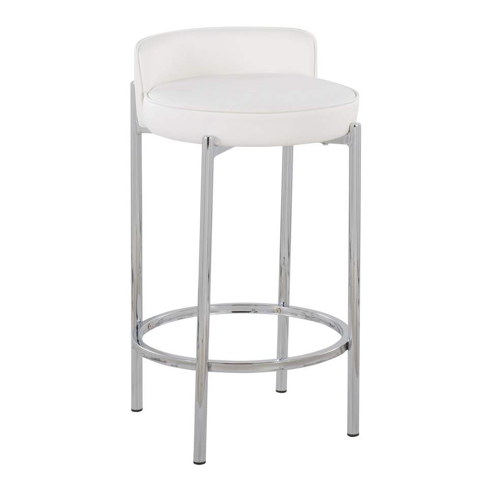 Set di 2 sgabello da bancone Design contemporaneo in metallo cromato e mobili in finta pelle bianca per sala da pranzo