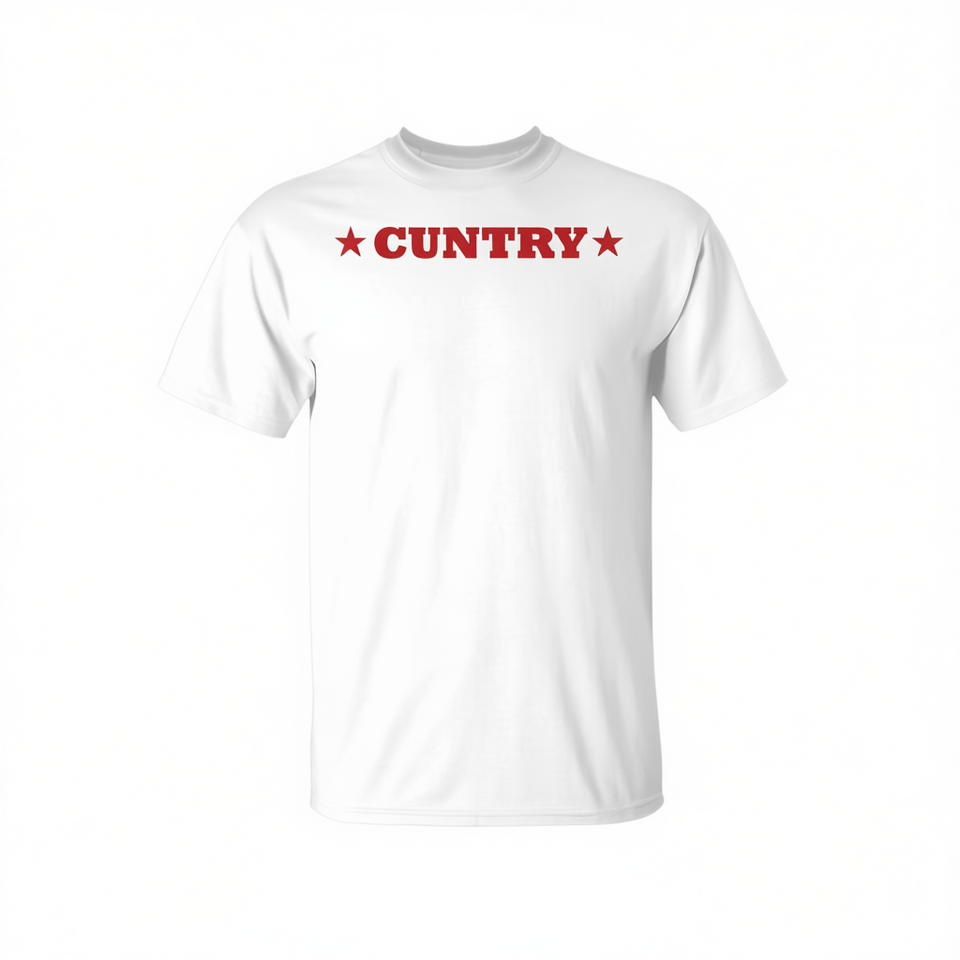 T-shirt Country con stampa stella rossa in cotone bianco unisex taglia adulto SMLXLXXL