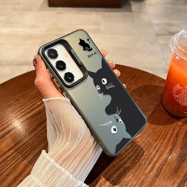 Couple Matching Phone case for Samsung Galaxy S25 Plus Shockproof Phone Case Black Cat Design Anti Drop Phone Cover Case