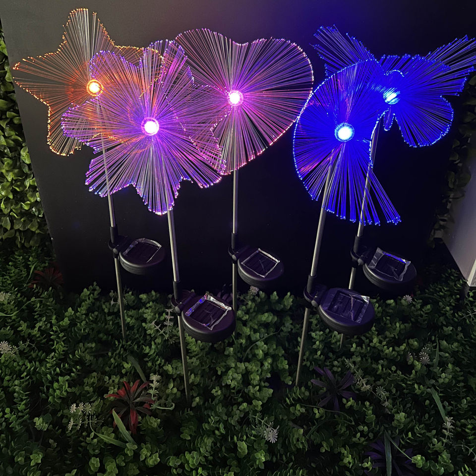 Lampada Solare LED da Giardino a Forma di Farfalla e Stella, Impermeabile IP65, Cambio Colore 2000-10000K, CRI 80-90, in Fibra Ottica