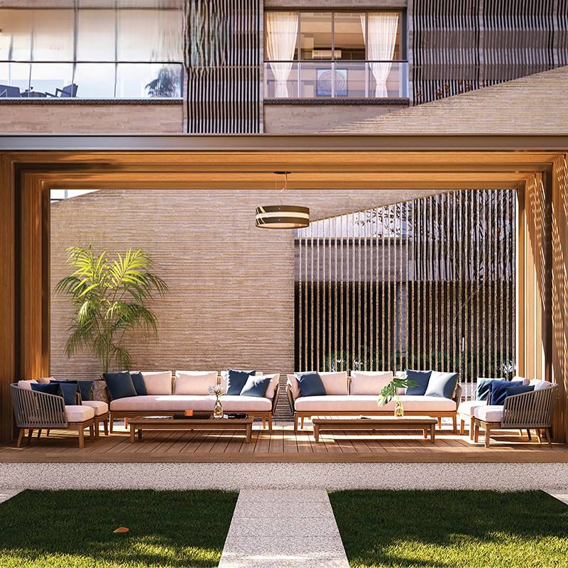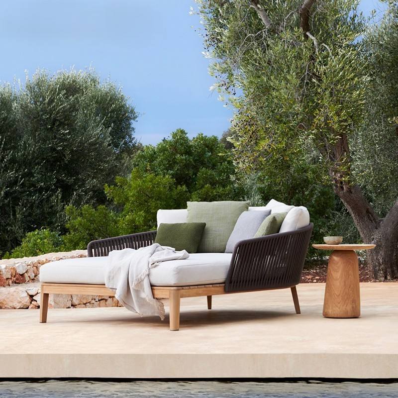Divano da Esterno in Teak e Rattan per Giardino, Caffè all'Aperto, Villa, Sala Espositiva, Design Nordico, Combinazione di Divani Mobili