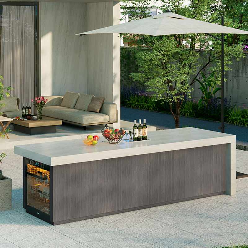 Tavolo da pranzo con bancone aperto per cortile Villa isola tavolo da tavolo in marmo integrato per la casa tavolo operatorio in pietra personalizzato
