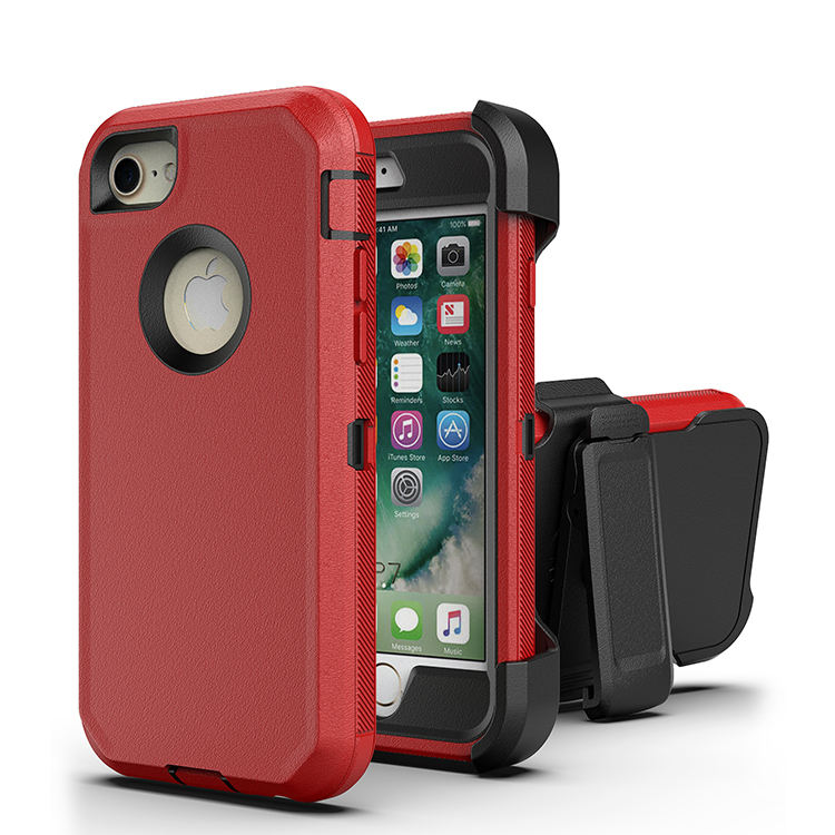 Cover per iPhone 6 +/7 +/8 + custodia protettiva antiurto ibrida a 3 strati per IP 8 Plus custodia antiurto per telefono con clip
