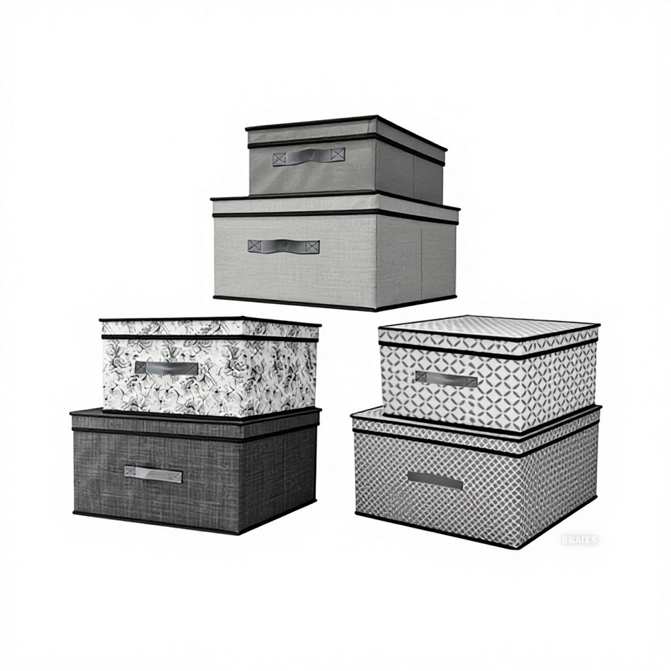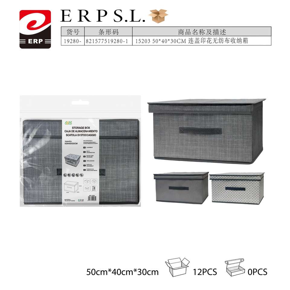 Scatola Portaoggetti in Tessuto Non Tessuto Stampato con Coperchio 50 X 40 X 30 Cm per Organizzazione Domestica