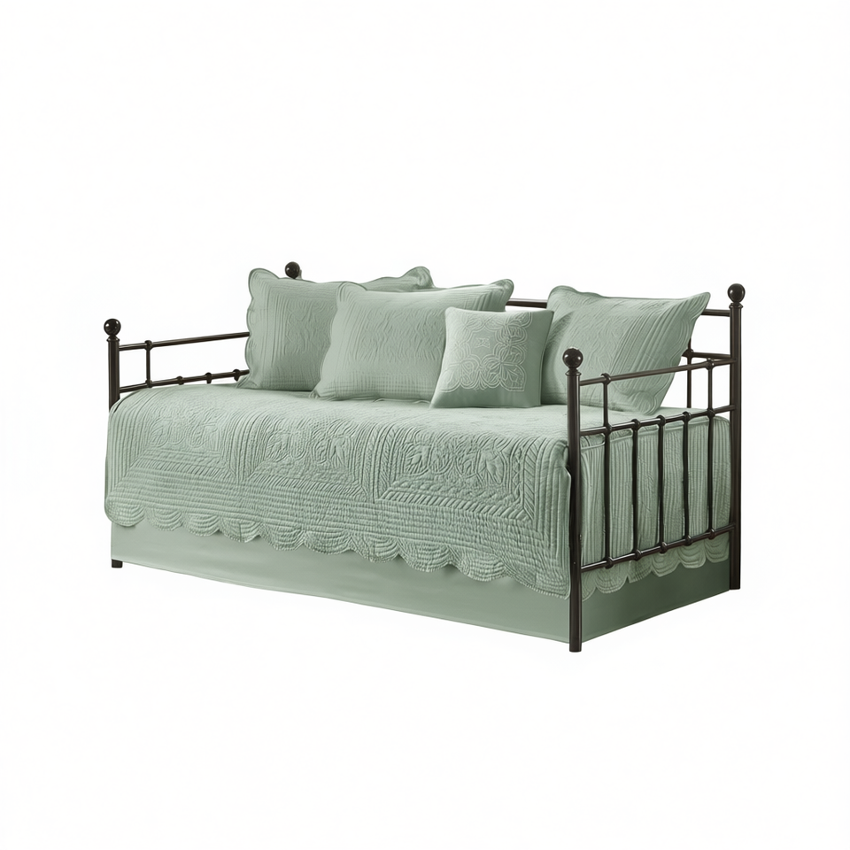 Cozy Home 6-Piece Seafoam Daybed Quilt Set Reversible Scallop-Edged Cotton Bedding All-Season Use