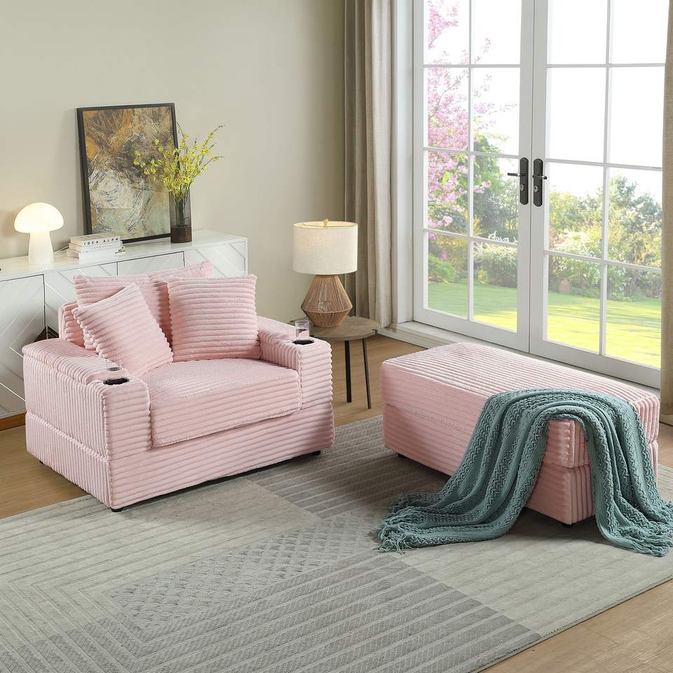 Set Soggiorno Accogliente: Divano Profondo con 2 Cuscini Decorativi e Pouf