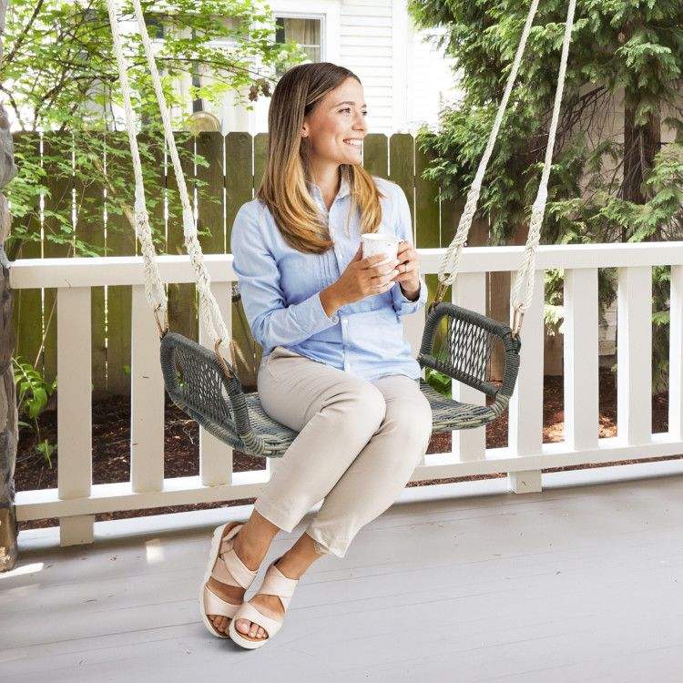 Comoda Dondola da Veranda in Vimini con Braccioli per Patio