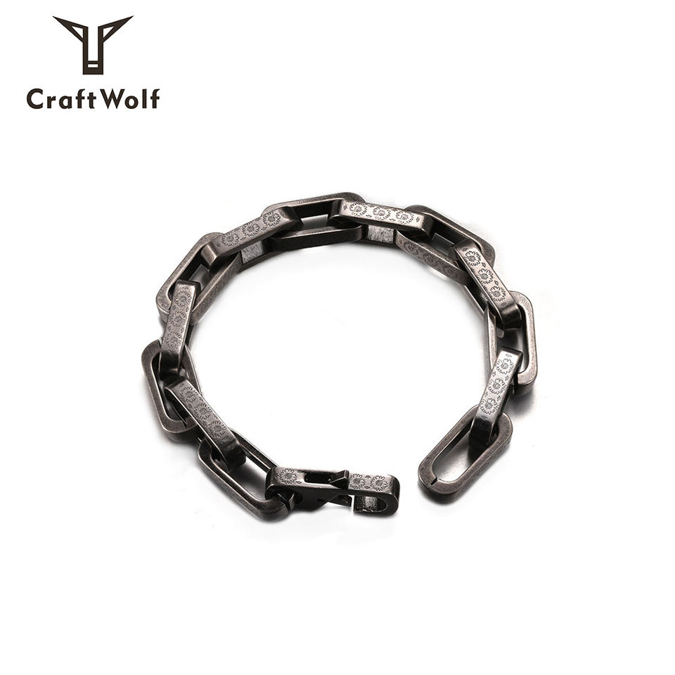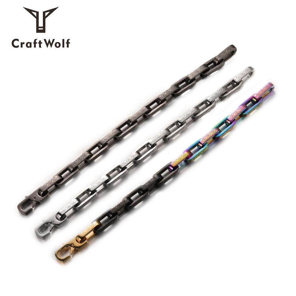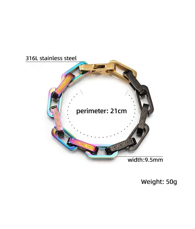 Craft Wolf Fashion Jewelry Vintage Silver Colorful Plating 316L Stainless Steel Cuff Engraved Daisy Cuban Link Chain Bracelet