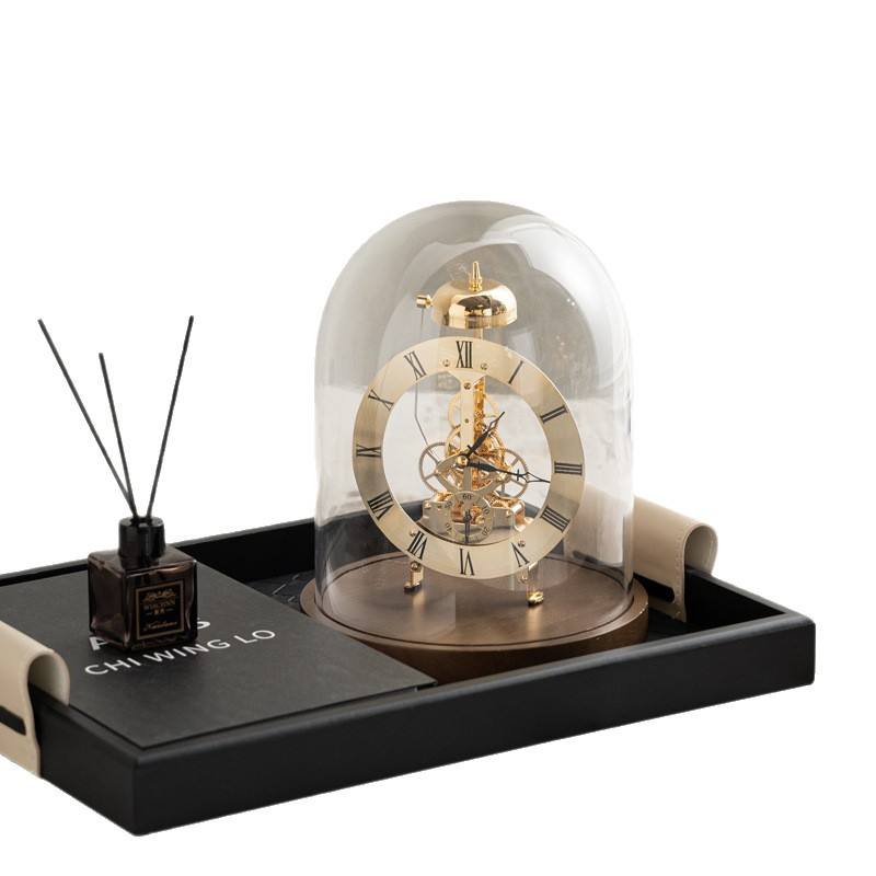 Craftsman stile italiano luce orologio meccanico di lusso copertura in vetro trasparente ornamento inciso tavolo di ispirazione romana