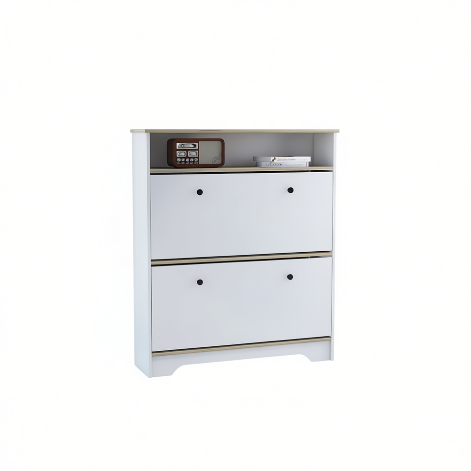 Scarpiera Cranbery in rovere chiaro e bianco con 2 ripiani, elegante soluzione di archiviazione per scarpe, mobili da soggiorno