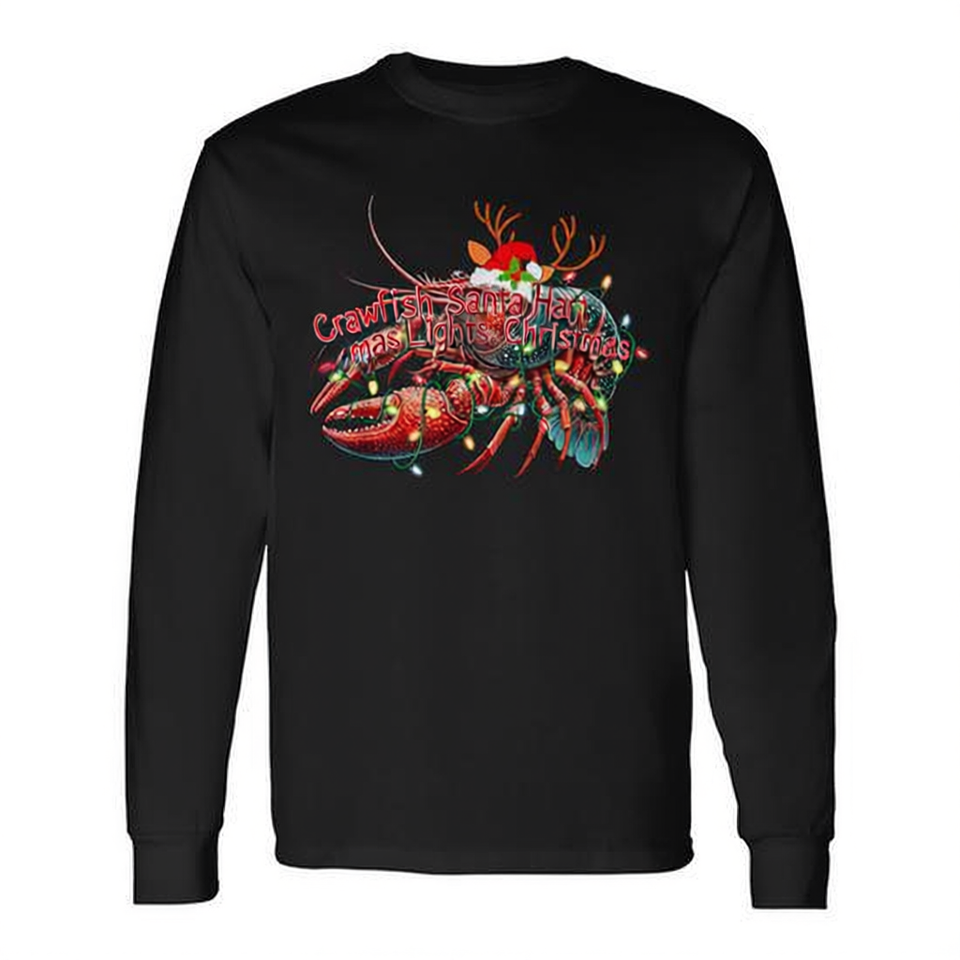 Maglietta a maniche lunghe con cappello da Babbo Natale e luci natalizie Crawfish