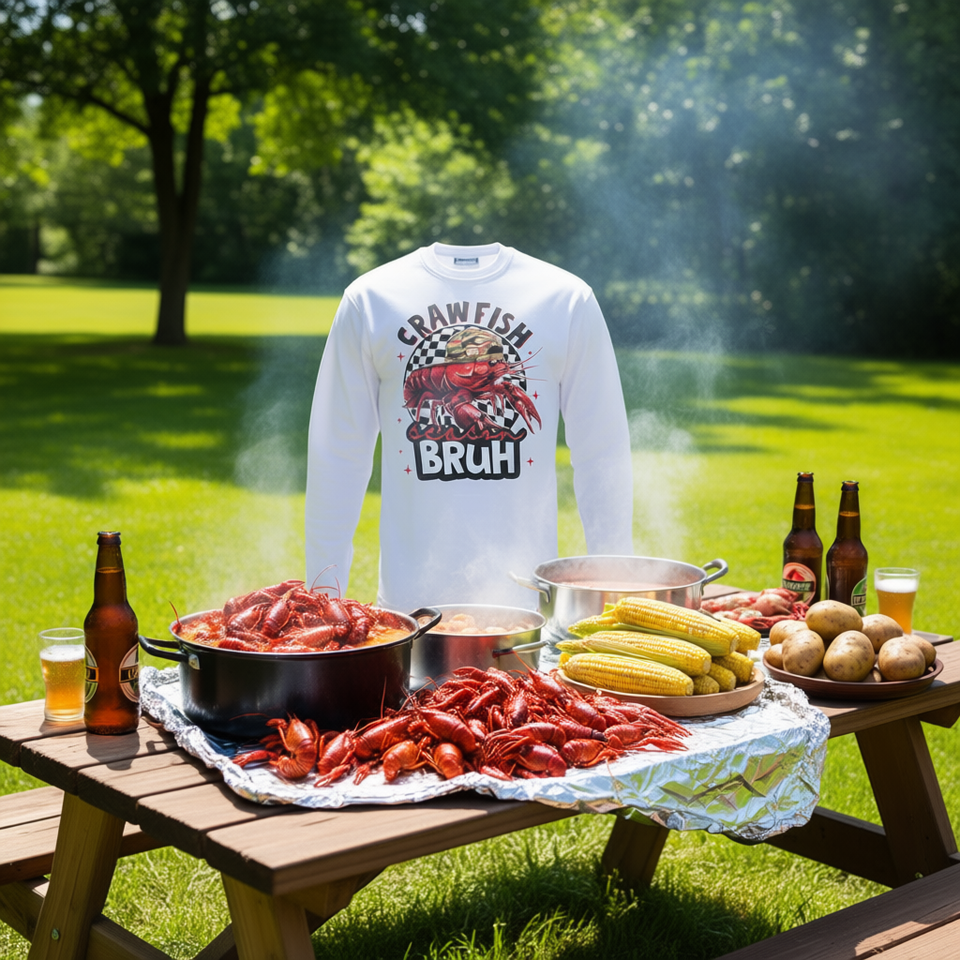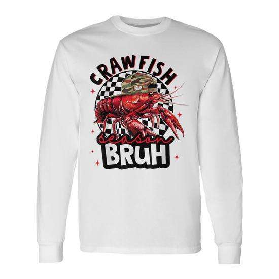 Maglietta a maniche lunghe Louisiana Crawfish, girocollo unisex, con grafica a tema frutti di mare della cultura cajun