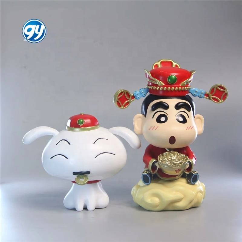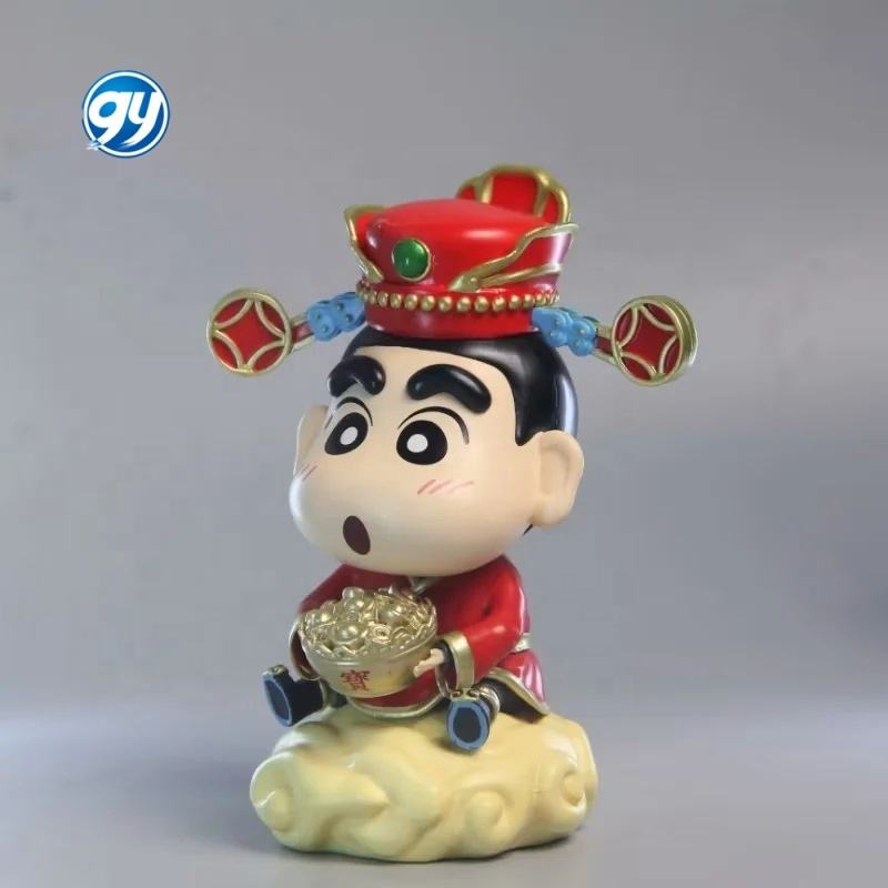 Crayon Shin Chan Wealth God Shinnosuke Holding Gold Ingot With Shiro Dog New Year Figure Model Boxed Collectible